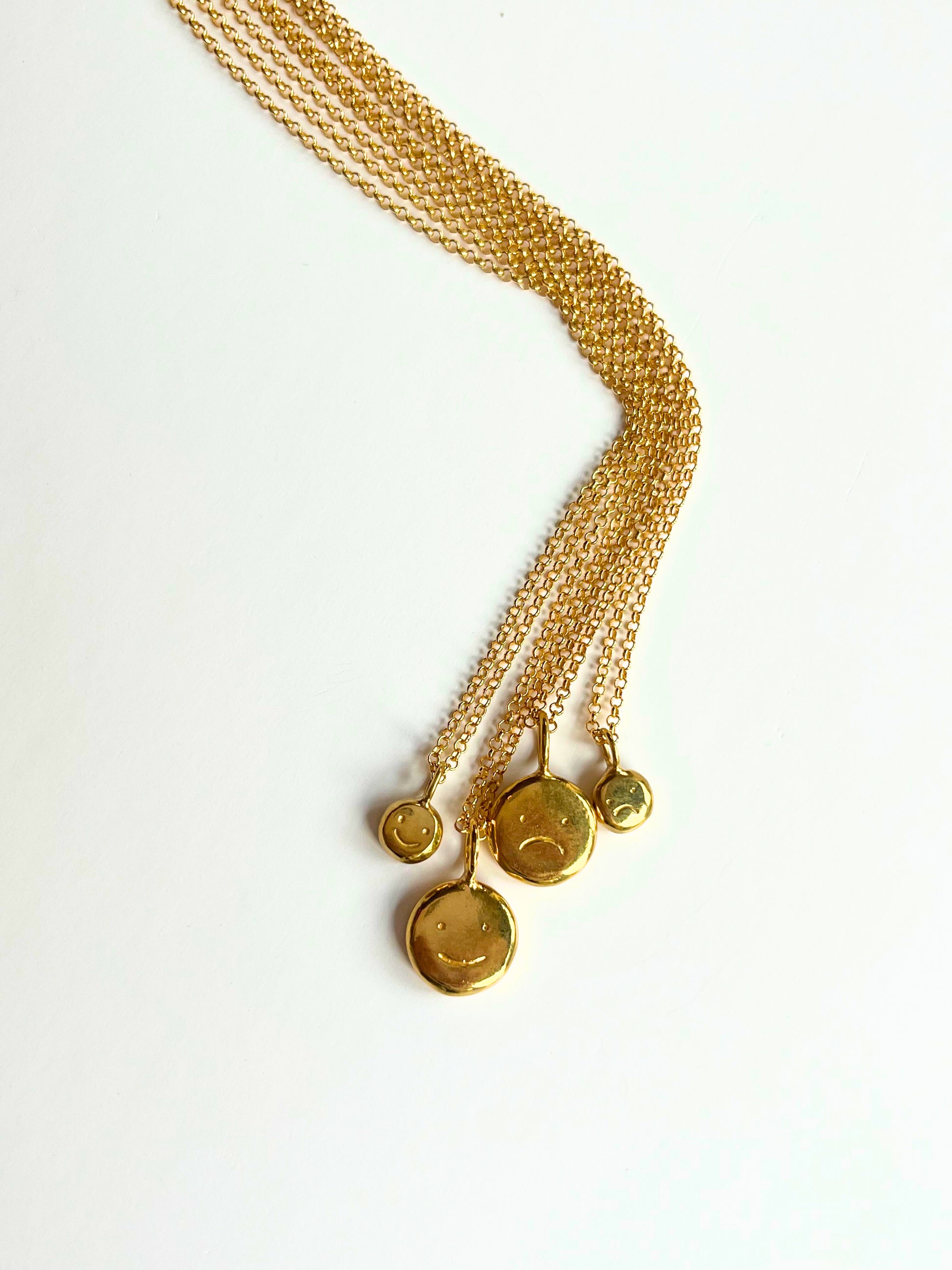 Gold baby "moodflip" smiley pendant